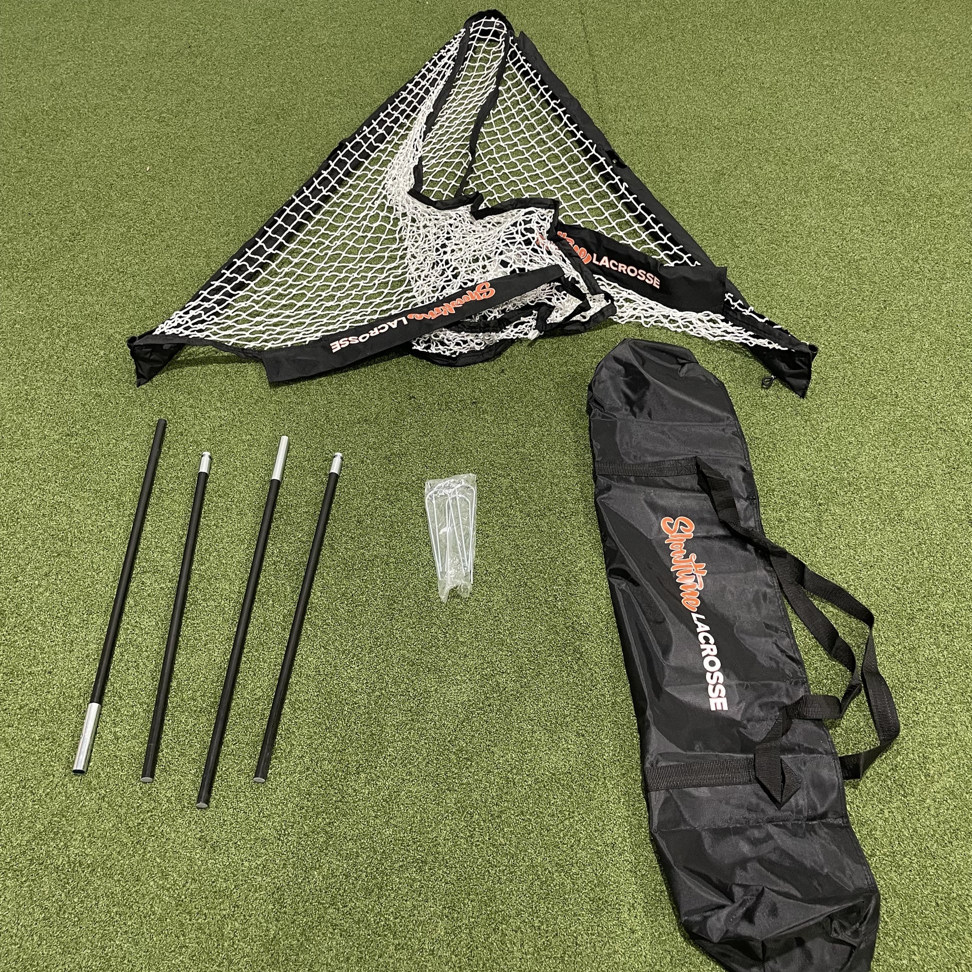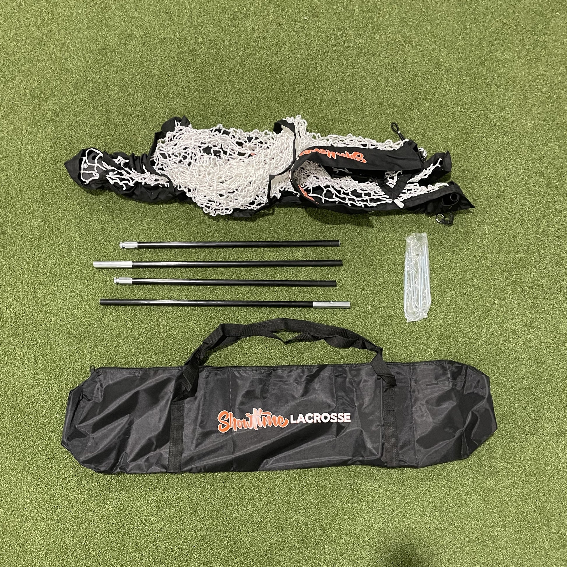 Our 4'x4' pop up goal sets up in minutes. Made with sturdy fiberglass poles & a steel frame, this product is both light weight and durable.